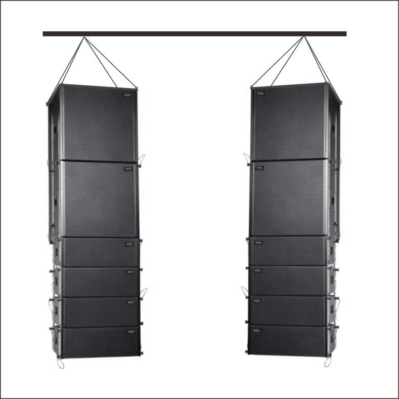 1、二路全频中远程线性阵列音箱,具有高清晰度和高声压级的特点,同时覆盖精确、声音准确,可以再现优美的声色;