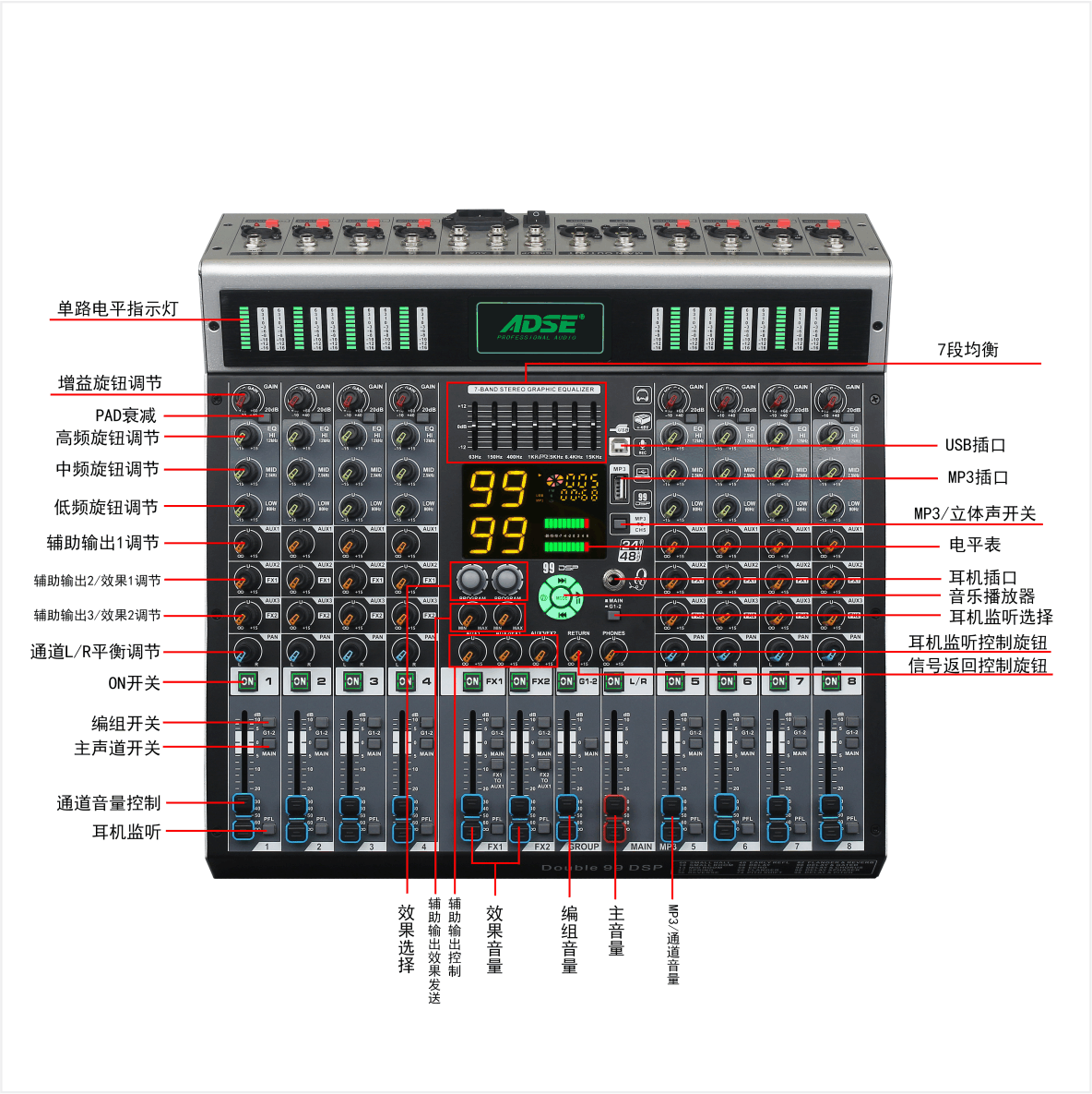 2.内置12路MIC+48V幻象电源供电,每通道独立控