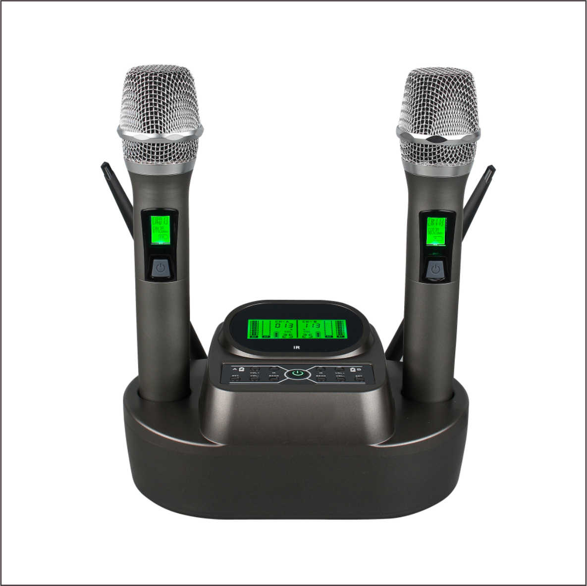 5.内建双频道接收模块,具有坚固、耐热及隔离谐波辐射干的专业质量;预设之150组互不干扰频率,并锁定不受干扰的工作频道